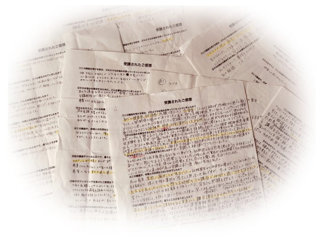 いつも自分でいろいろ悩んできたけどこんなの習わなきゃわからなかった!本当に受講してよかったです。